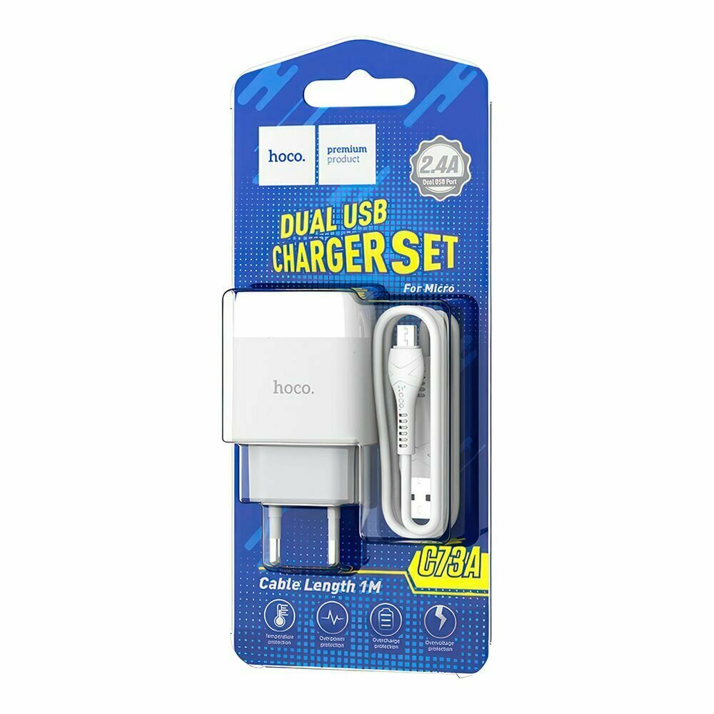 Сетевое зарядное устройство, 2 USB 2.4A (C73A), HOCO, Micro, белый