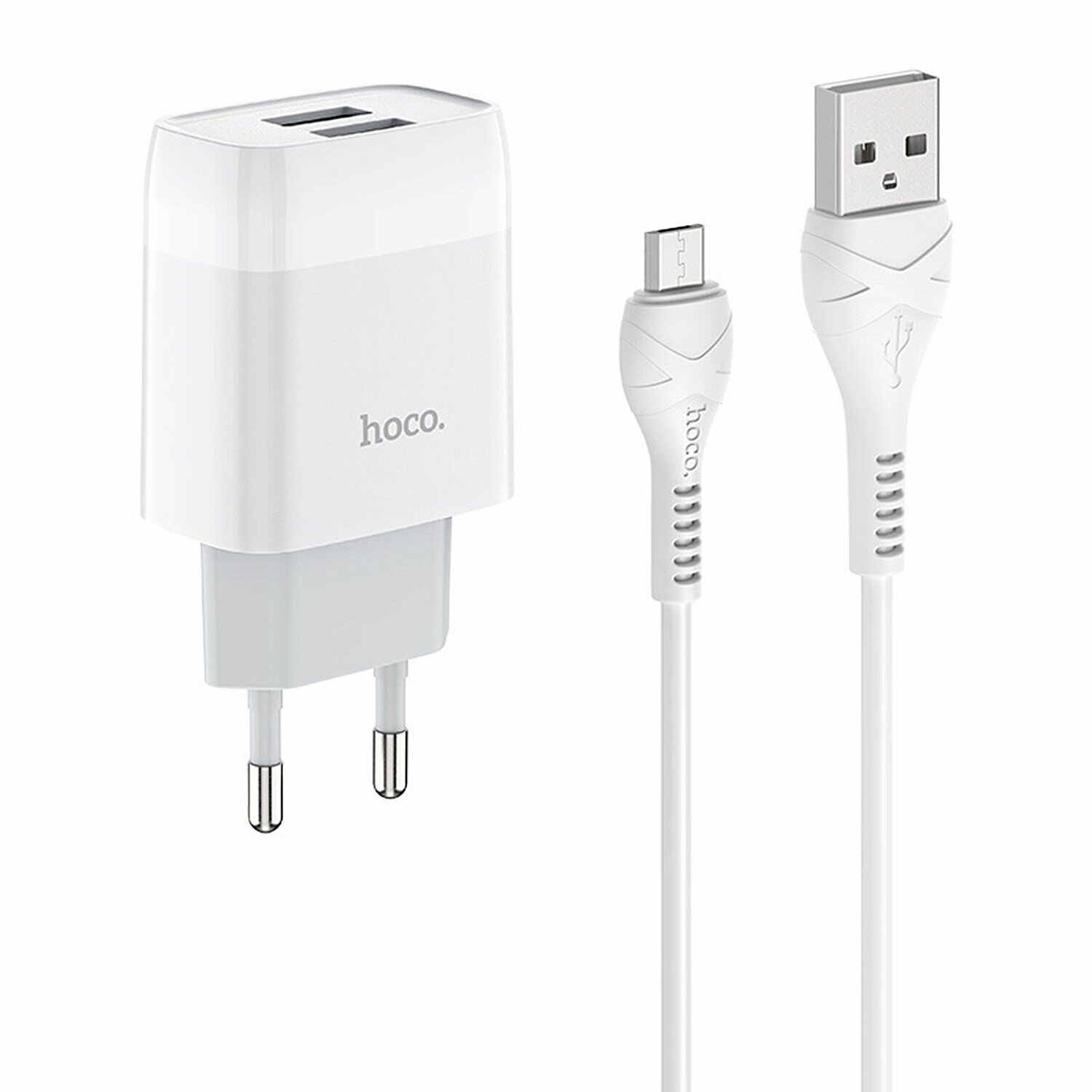 Адаптер СЗУ-2USB 2.4A Hoco C73A + MicroUSB 1м, бел