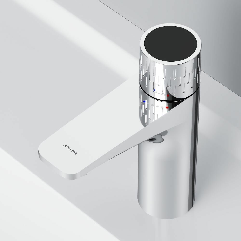 СохранитьСмеситель для раковины в ванную AM.PM Gem с индикацией температуры, хром, монолитный излив 100 мм, латунь интересное: