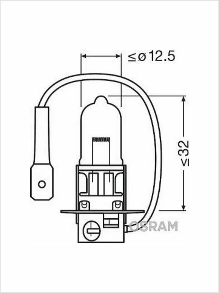 Лампа галоген 12v h3 55w pk22s osram +30% яркости всепогодная 64151als