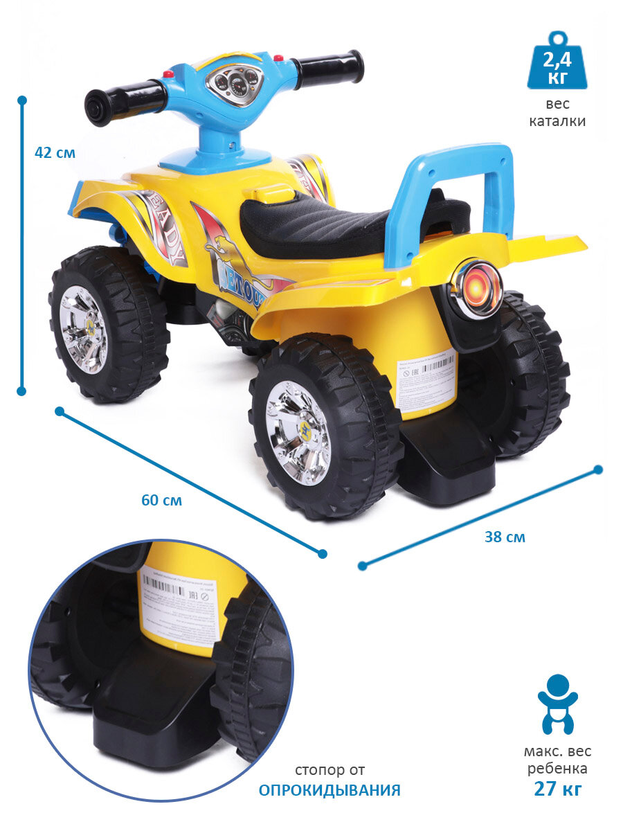 Купить Пушкар каталка детская Super ATV Babyсare, кожаное сиденье, желто-синяя