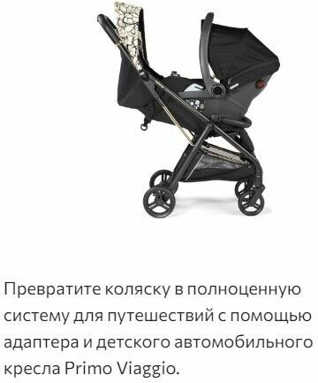| Дополнительная информация | превратите коляску в полноценную систему для путешествий с помощью приобретающихся отдельно адаптера и детского автомобильного кресла Primo Viaggio; максимальная нагрузка на корзину 5 кг; максимальный градус наклона спинки 170° |