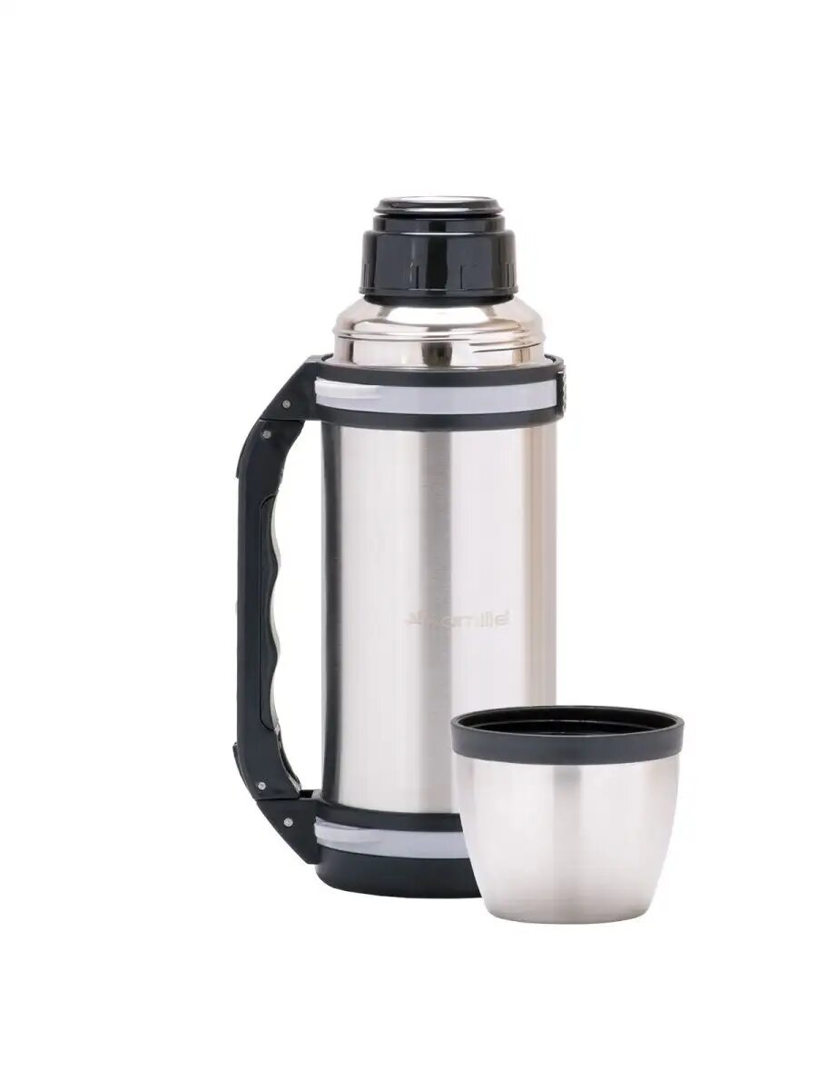 Термос Kamille туристический, 1 л из нержавеющей стали с ручкой, ремешком и чашкой-крышкой