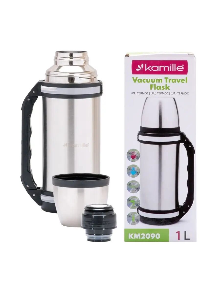 Классический термос Kamille KM-2090, 1 л, серебристый