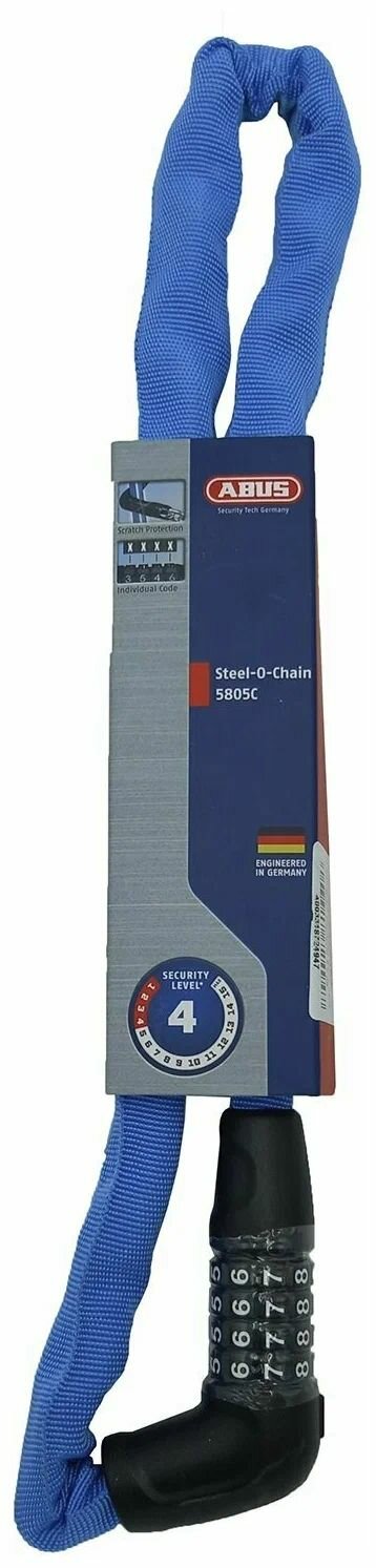 Замок 05-0072494 вело цепь 5мм, кодовый 4-х разр, Steel-O-Chain 5805C/75см класс защиты 4/15, 500гр, голубой ABUS
