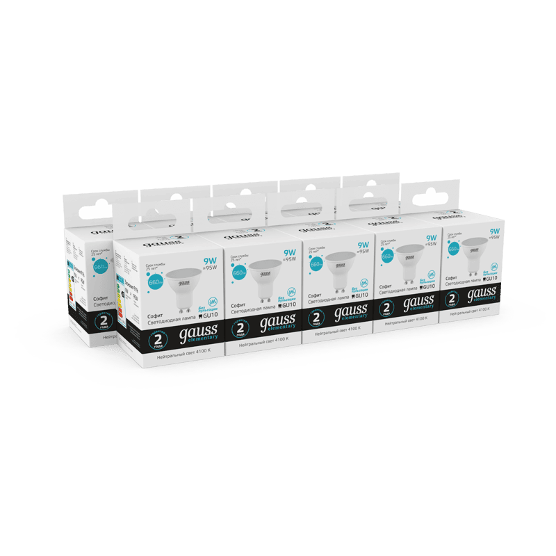 (5 шт)Лампа Gauss Elementary MR16 9W 660lm 4100К GU10 LED 1/10/100