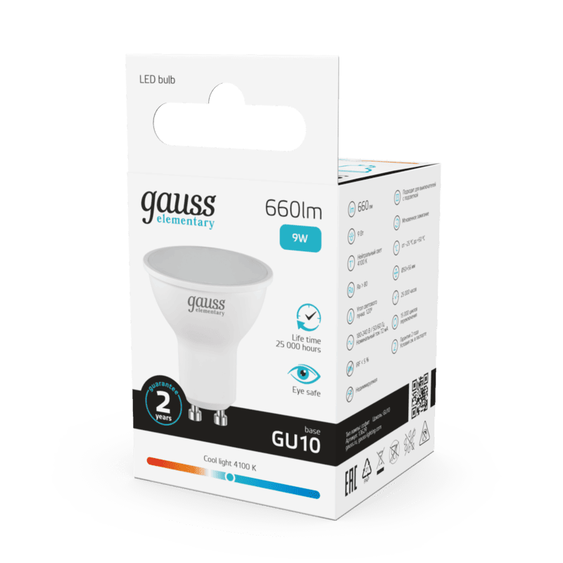 Лампа Gauss Elementary MR16 9W 660lm 4100К GU10 LED 1/10/100