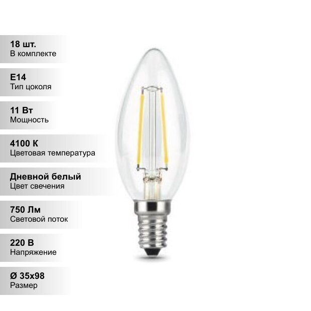 Купить (18 шт.) Светодиодная лампочка свеча Gauss С35 11Вт 150-265В 4100К E14 филаментная