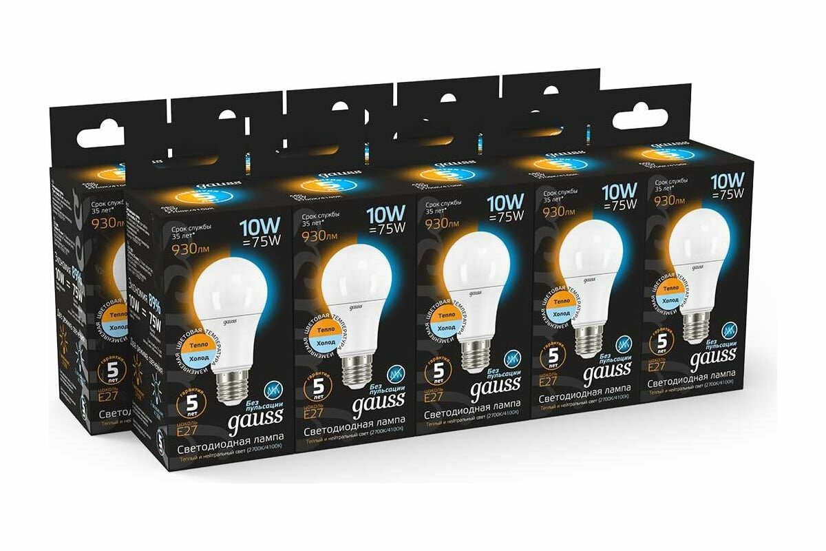 Gauss Лампа Gauss LED A60 10W E27 930lm 3000K/4100K CTC 1/10/50 102502110-T