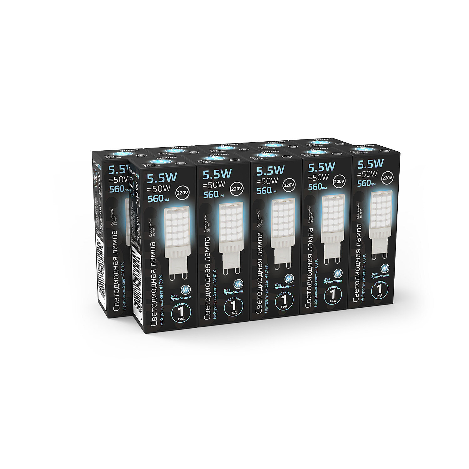 Лампа Gauss G9 AC185-265V 5,5W 560lm 4100K керамика LED 1/10/200