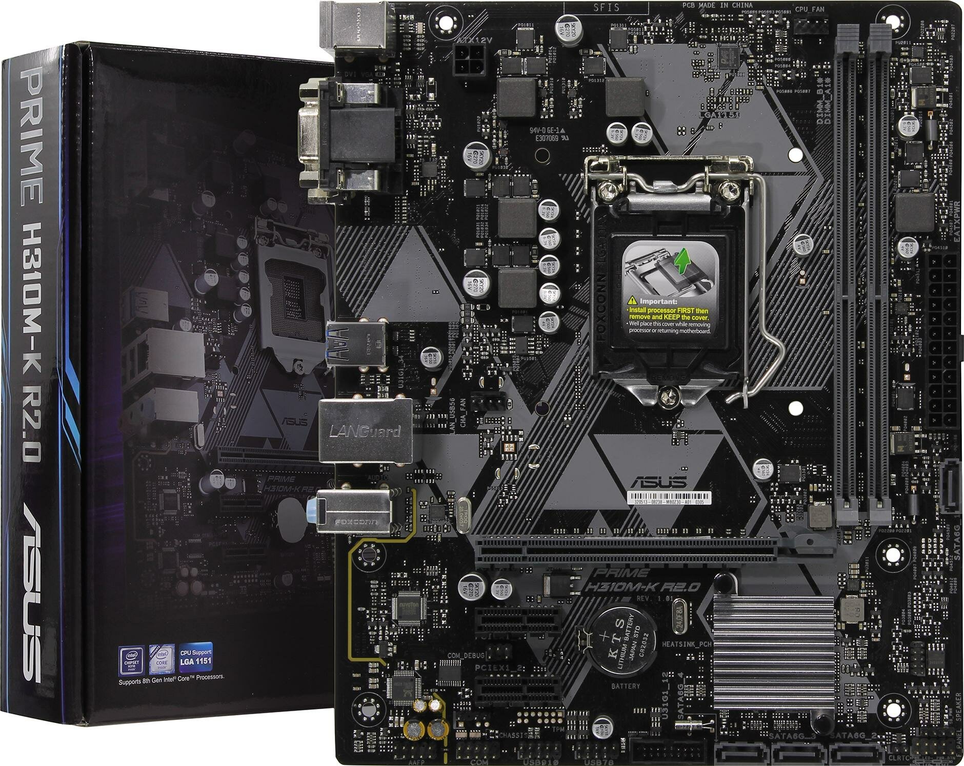 ASUS PRIME H310M-K R2.0, LGA1151, H310, 2*DDR4, D-Sub + DVI, SATA3, Audio, Gb LAN, USB 3.1*4, USB 2.0*6, COM*1 header (w/o cable), mATX ; 90MB0Z30-M0EAY0