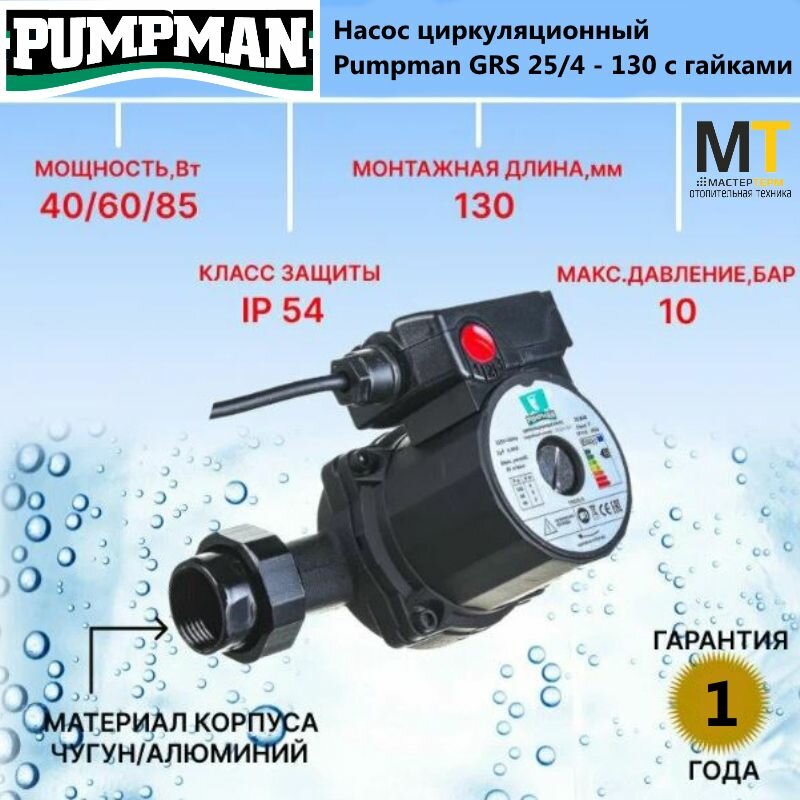 Циркуляционный насос GRS 25/4 130 с гайками PUMPMAN