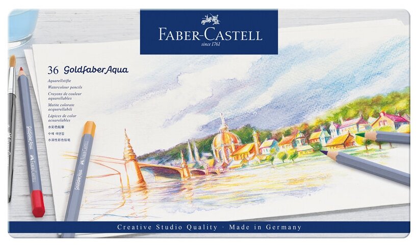 Карандаши акварельные художественные Faber-castell "Goldfaber Aqua", 36 цветов, метал. коробка