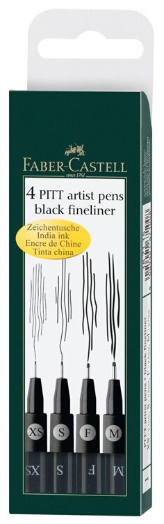 Faber-Castell Набор из 4 черных капиллярных ручек Pitt - M, F, S, XS sela