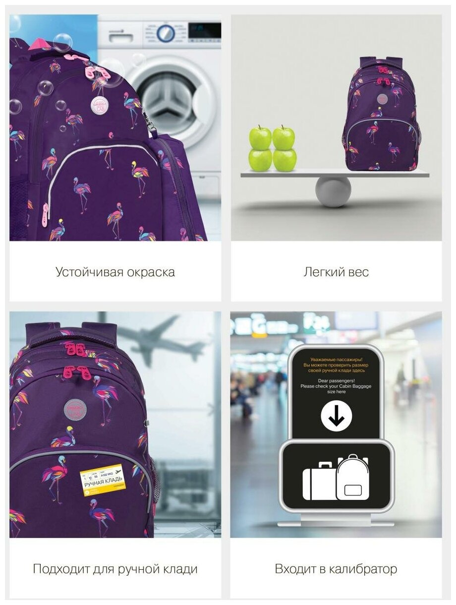 Рюкзак школьный GRIZZLY RG-260-4 Фламинго , грудная стяжка, 2 отделения, 40x27x20см интересное:
