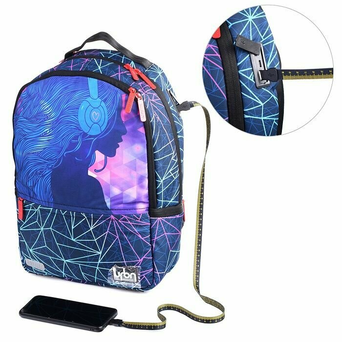 Рюкзак школьный для девочек ранец портфель сумка deVENTE. Red Label. DJ Girl разъемы для USB и наушников