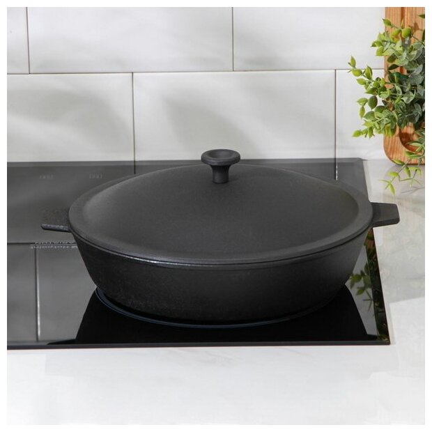 Сковорода Камская посуда у8082 чугунная 280х80 с двумя ушками со стеклянной крышкой