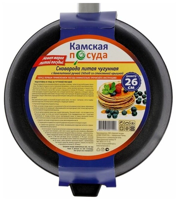 СохранитьСковорода Камская Посуда б6062 чугунная 260х60 с бакелитовой ручкой со стеклянной крышкой интересное: