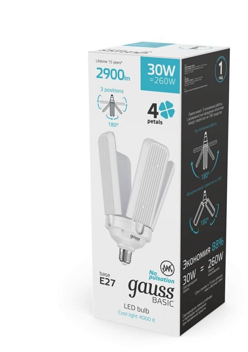 Ниже Вы можете прочитать отзывы на 11732232 Лампа Gauss Basic 30W 2900lm 4000K E27 Клевер-4 LED 1/20, ознакомится с подробными характеристиками, посмотреть интересные обзоры и фотографии на 11732232 Лампа Gauss Basic 30W 2900lm 4000K E27 Клевер-4 LED 1/20.
