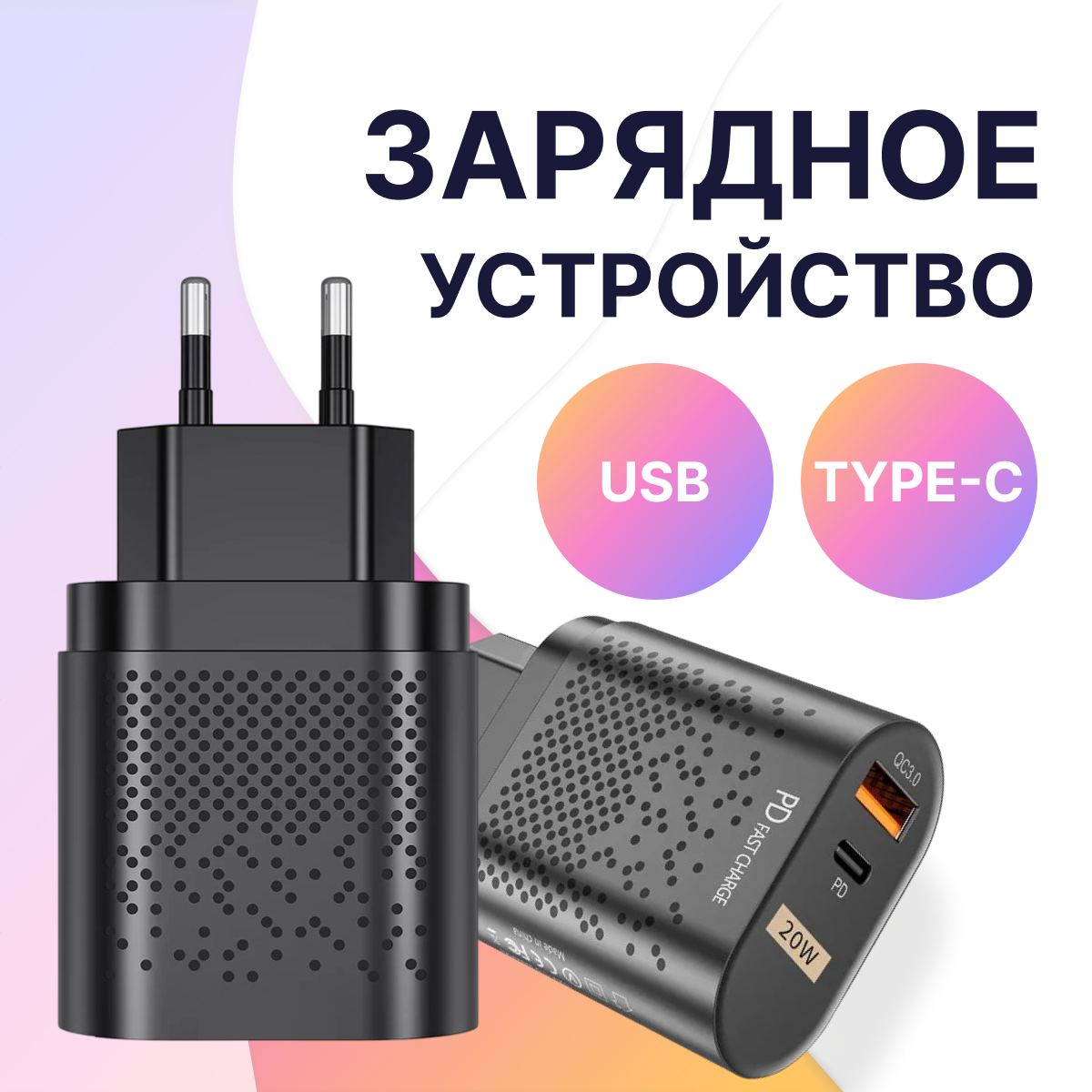 Зарядное устройство для двух устройств (ЗУ) 20W / Блок с функцией быстрой зарядки Quick Charge 3.0 / USB Type-C 20 Ватт / Power Delivery (Черный)