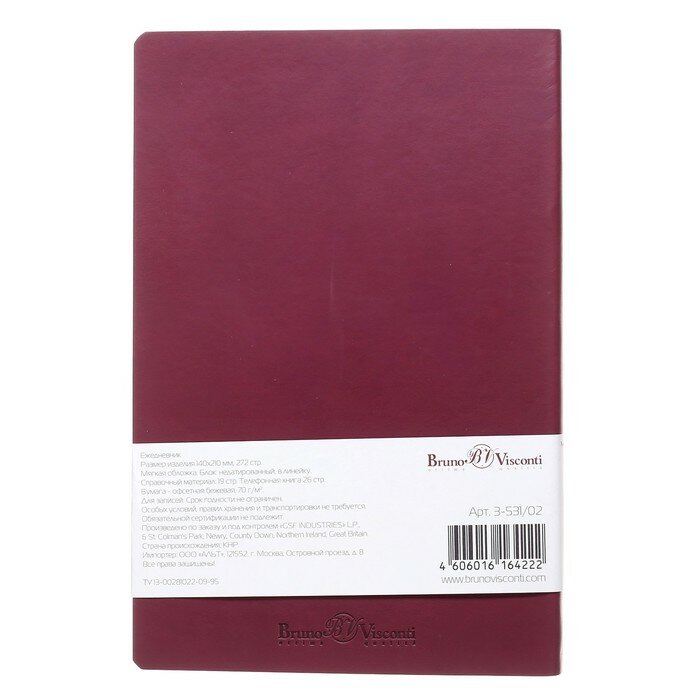 Ежедневник недатированный Bruno Visconti А5, 136л, MEGAPOLIS FLEX бордовый 3-531/02, КТ994613
