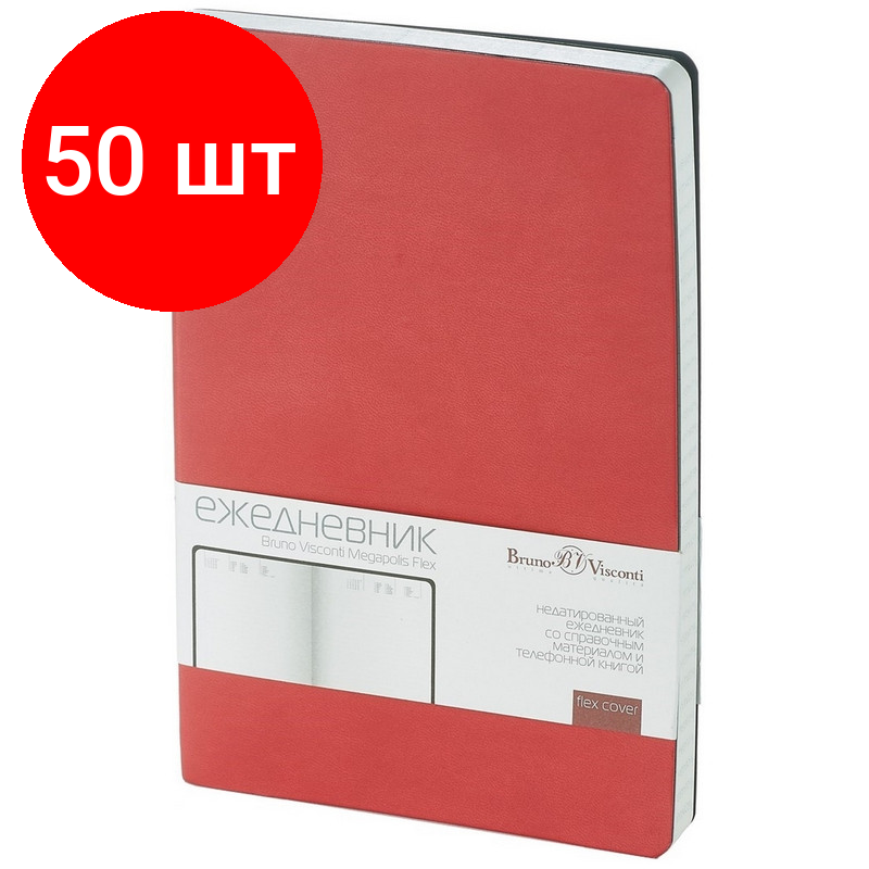 Купить Комплект 50 штук, Ежедневник недатированный А5, 136л, MEGAPOLIS FLEX красный 3-531/10