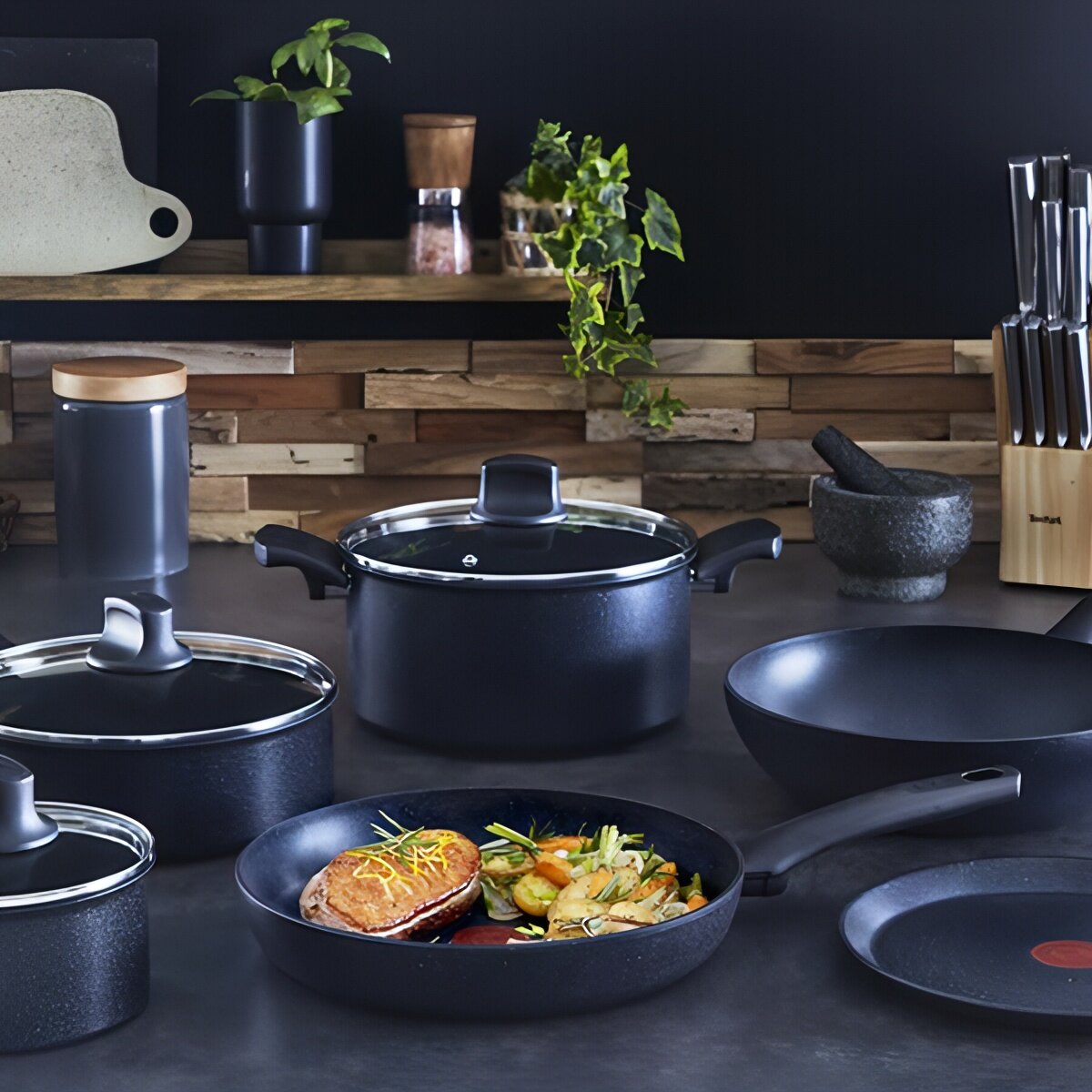Сковорода-вок Tefal "Black Stone" 28см, алюминий, антипригарное покрытие, черная интересное: