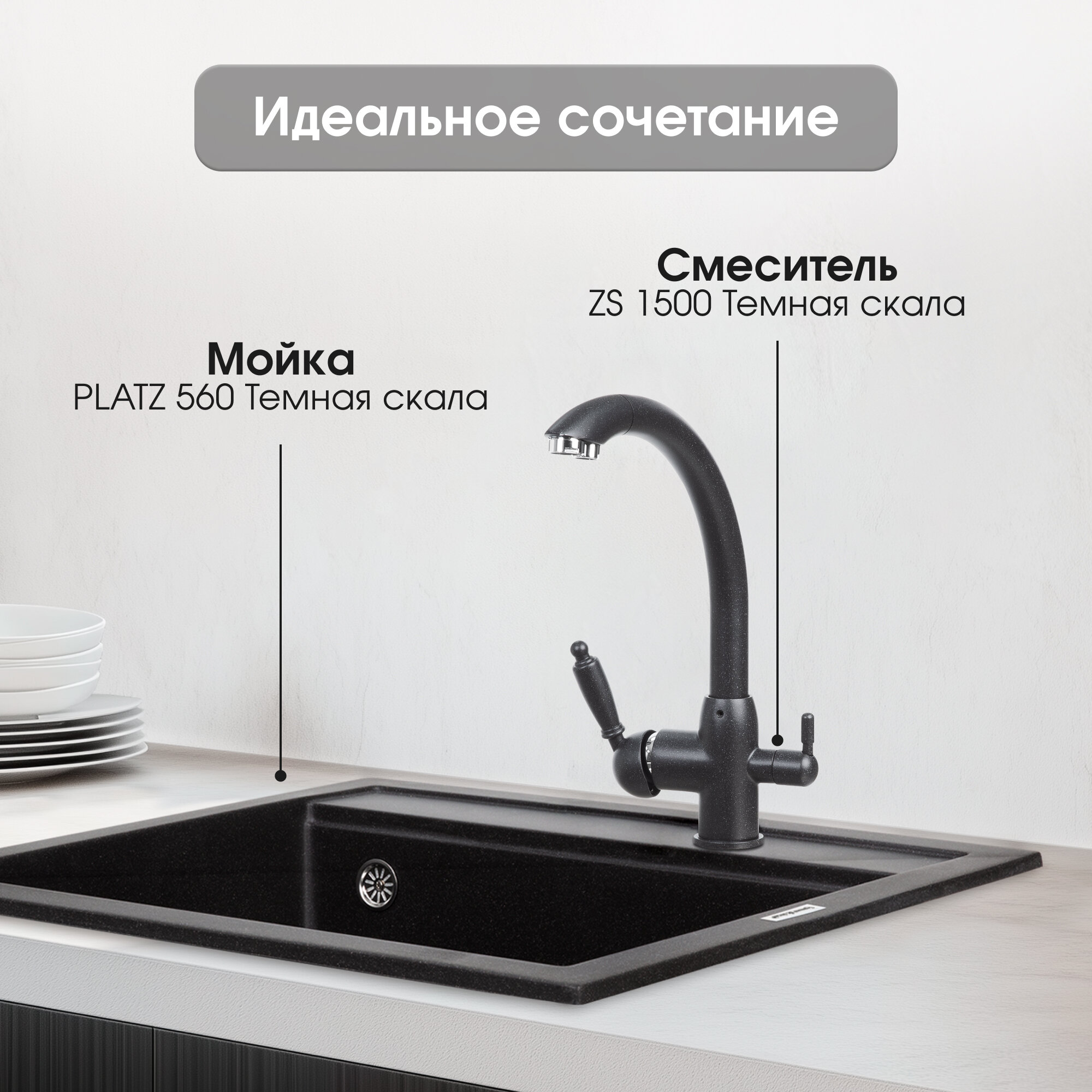 Смеситель кухонный ZIGMUND SHTAIN ZS 1500 гранит под фильтр (Черный базальт)