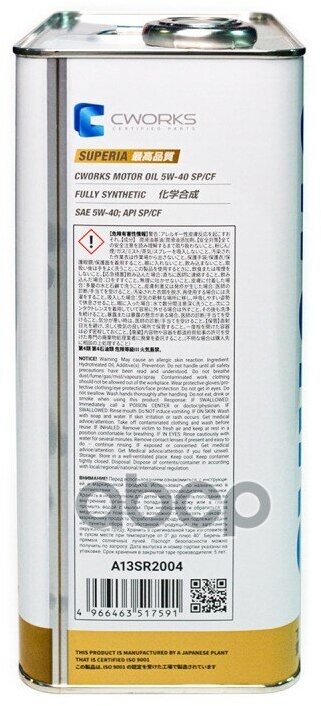 CWORKS A13SR2001 Масо мотор.SUPERIA CWORKS MOTOR OIL 5W-40 SPCF (1) A13SR2001