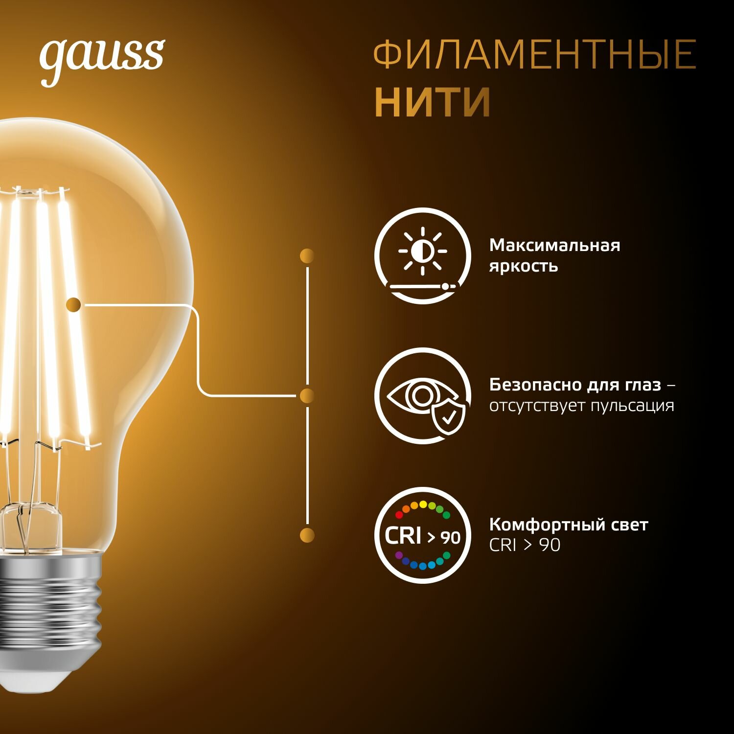 Набор из 10 штук Лампа Gauss Filament А60 6W 600lm 2700К Е27 LED 1/10/40