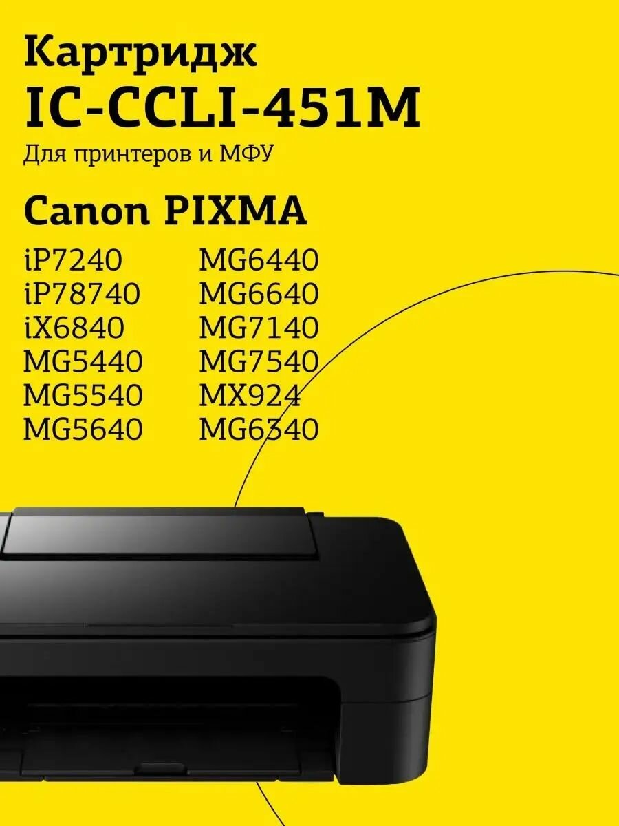 IC-CCLI-451M XL Картридж для Canon PIXMA iP7240, MG5440, 6340, MX924, пурпурный, с чипом