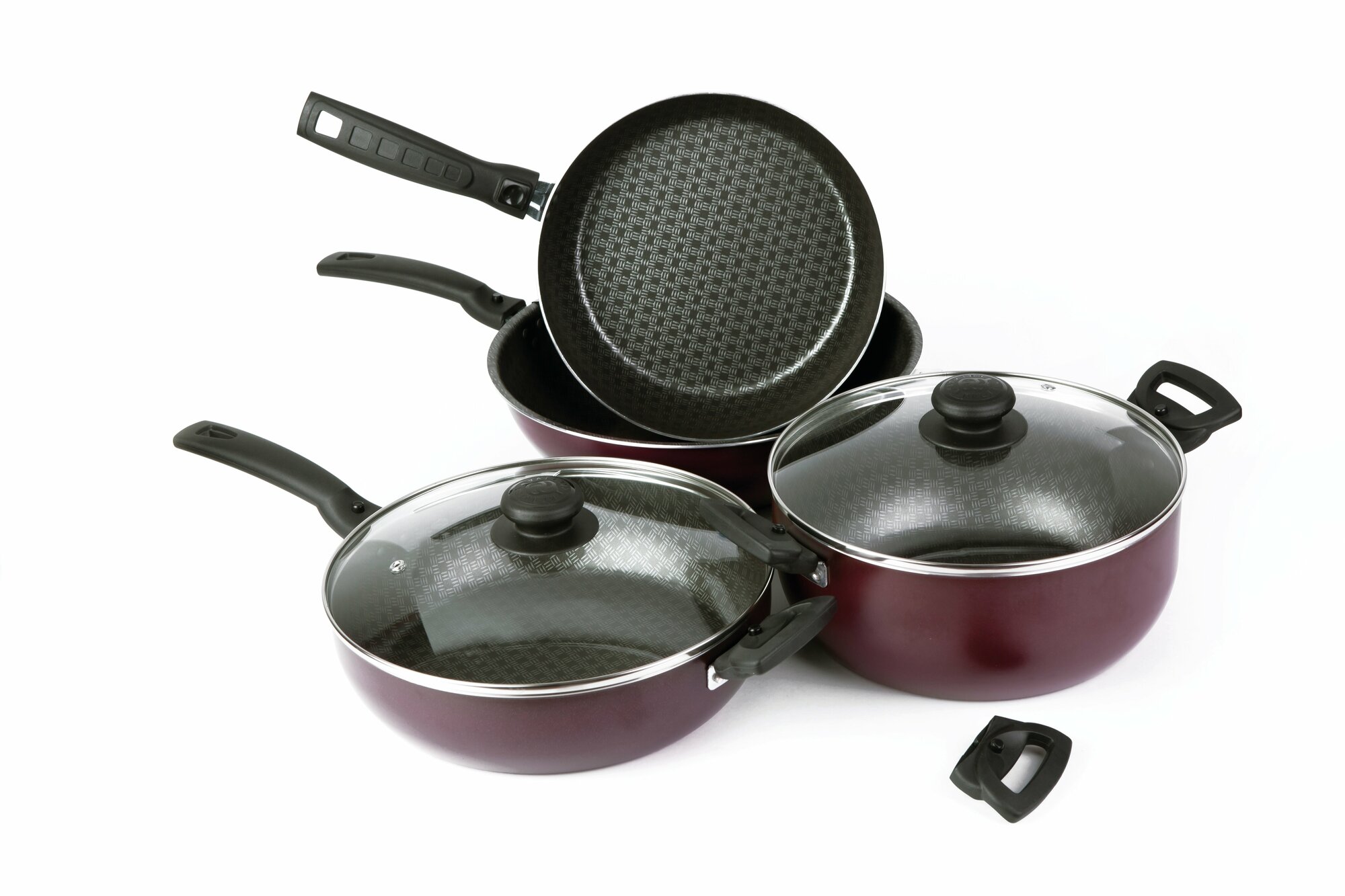 Сковорода "Хозяюшка", d=20 см, съёмная ручка, стеклянная крышка, антипригарное покрытие, цвет бордовый