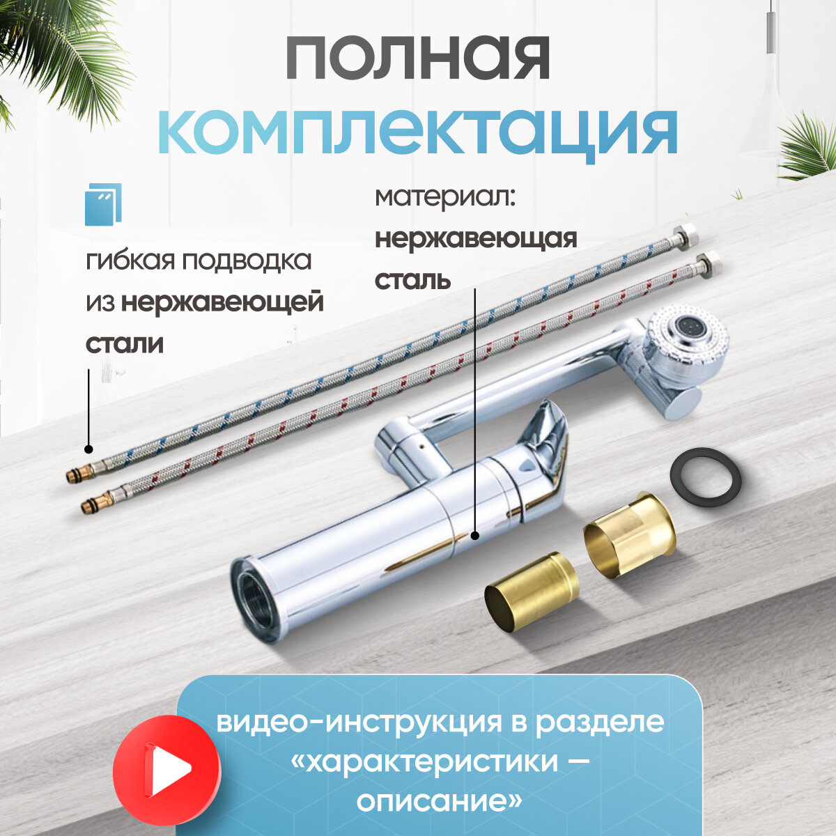 | Комплектация | Смеситель для раковины ванной кухни - 1шт, гибкая подводка 50см- 2шт, набор крепления- 1шт; Однорычажный смеситель для подвесных накладных напольных раковин, для душа на столешницу; кран для воды с гибким изливом аэратором для мойки умывальника черный, хром; Смеситель для ванной кухни раковины поворотный универсальный для горячей и холодной воды из латуни; из латуни для ремонта сантехника |