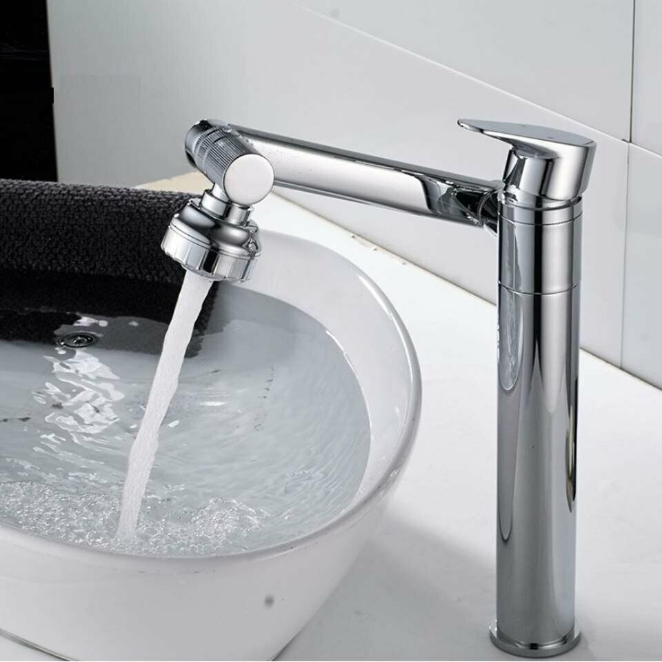 Смеситель для ванной кухни раковины умывальника мойки, кран с гибким изливом аэратором. Латунь. Вращение на 360 градусов.