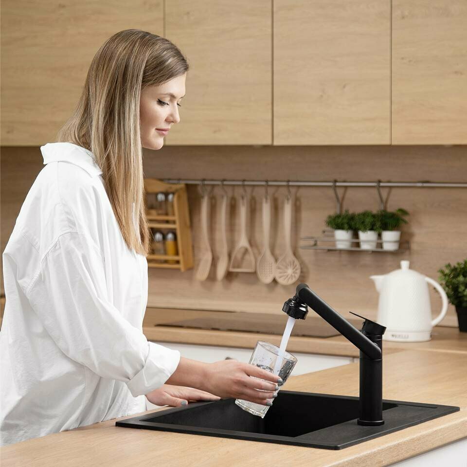 Смеситель для кухни, кран для раковины в ванную, для кухонной мойки и накладной раковины. Gliwemix, цвет черный - 30см