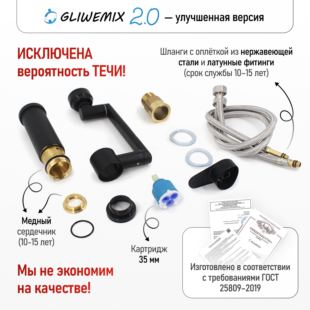 СохранитьСмеситель для кухни, кран для раковины в ванную, для кухонной мойки и умывальника Gliwemix, цвет черный. Высота - 20см интересное: