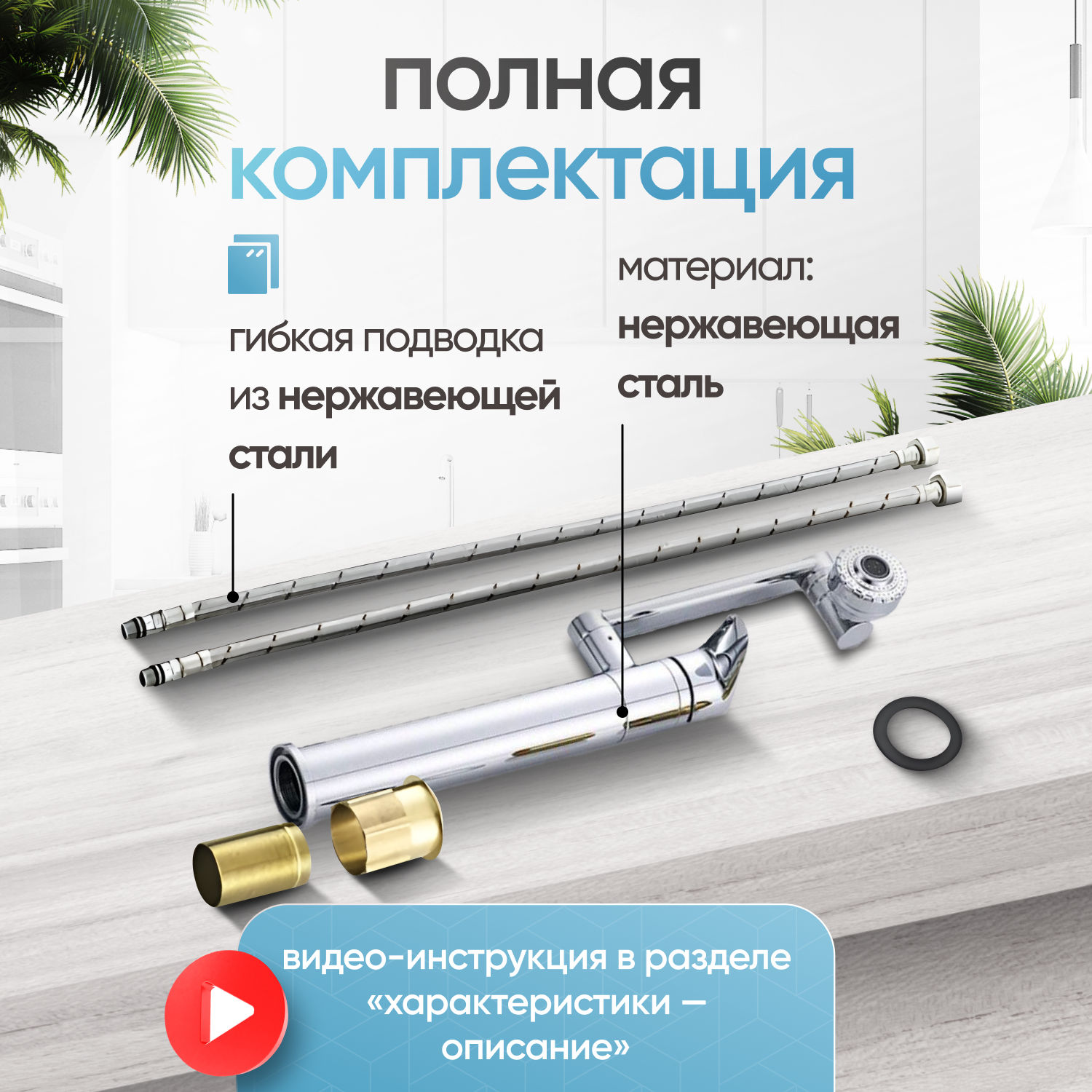 | Комплектация | Смеситель для раковины ванной кухни - 1шт, гибкая подводка 50см- 2шт, набор крепления- 1шт; Однорычажный смеситель для подвесных накладных напольных раковин, для душа на столешницу; кран для воды с гибким изливом аэратором для мойки умывальника черный, хром; Смеситель для ванной кухни раковины поворотный универсальный для горячей и холодной воды из латуни; из латуни для ремонта сантехника |
