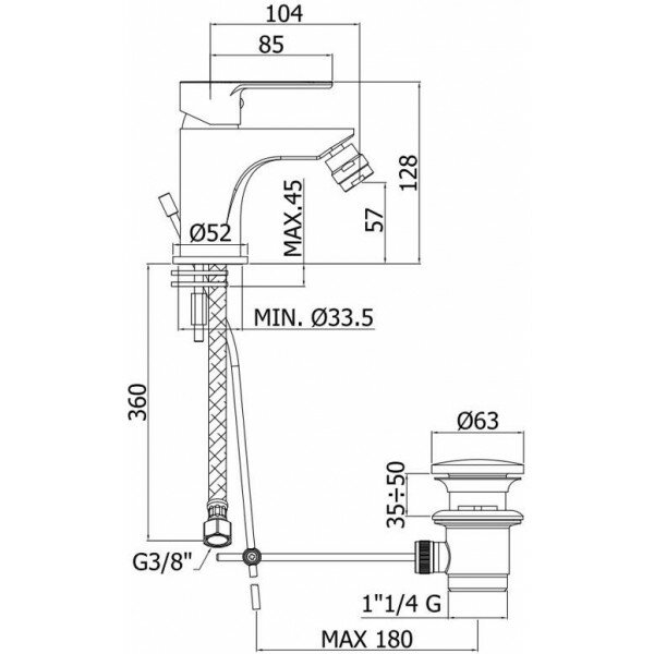 Смеситель для биде Paffoni Blu с донным клапаном, хром (BLU135CR)