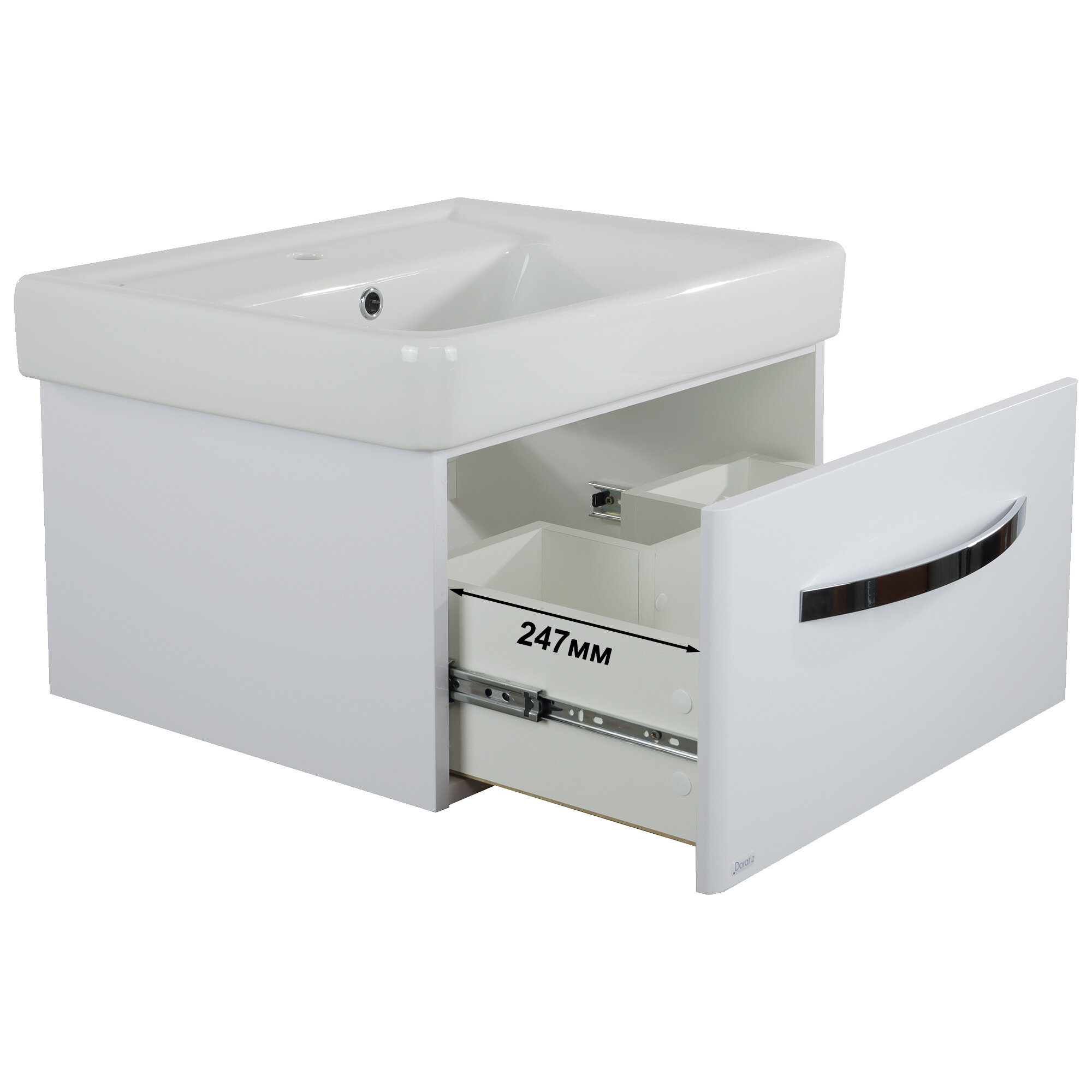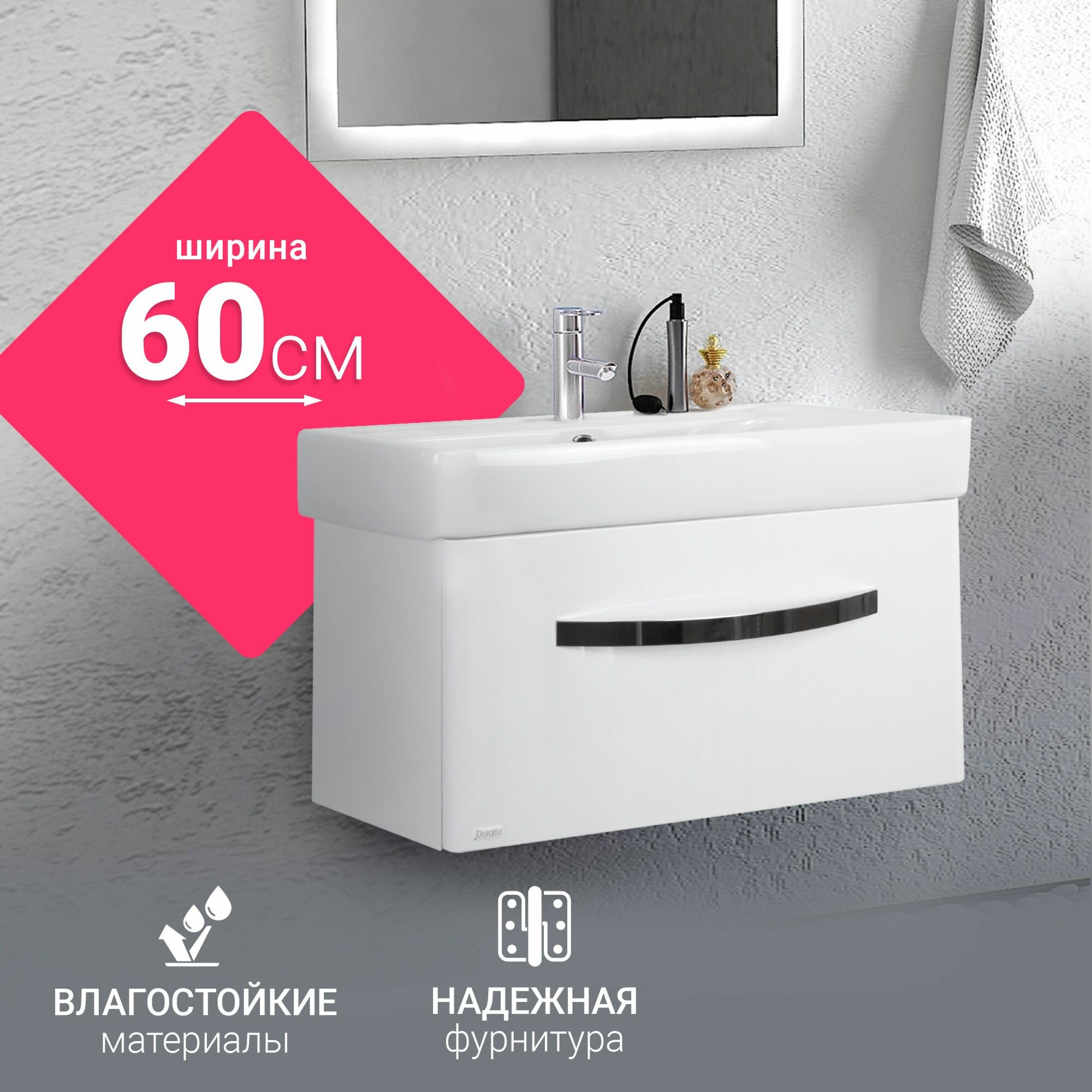 Тумба Коралл 60 подвесная, белая, под умывальник Сомо 60, с ящиком DORATIZ 9912.817С интересное: