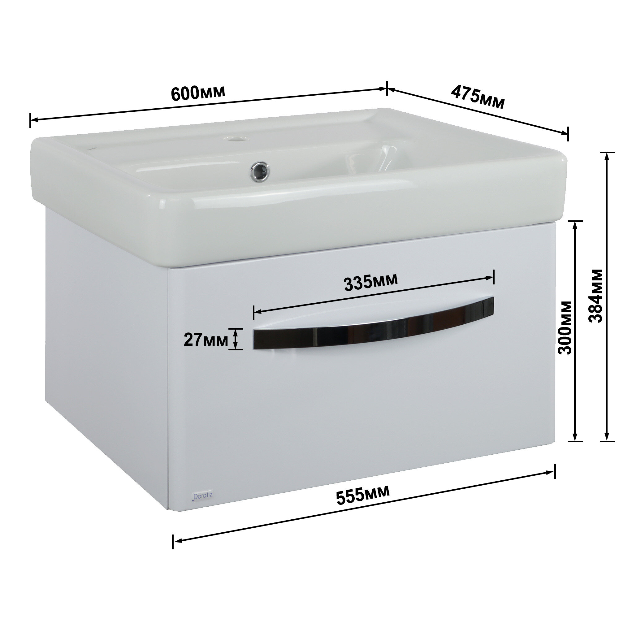 Тумба Коралл 60 DORATIZ 9912.817C, белая, подвесная с одним ящиком, под умывальник Сомо 60, Арт.: 9912.817С