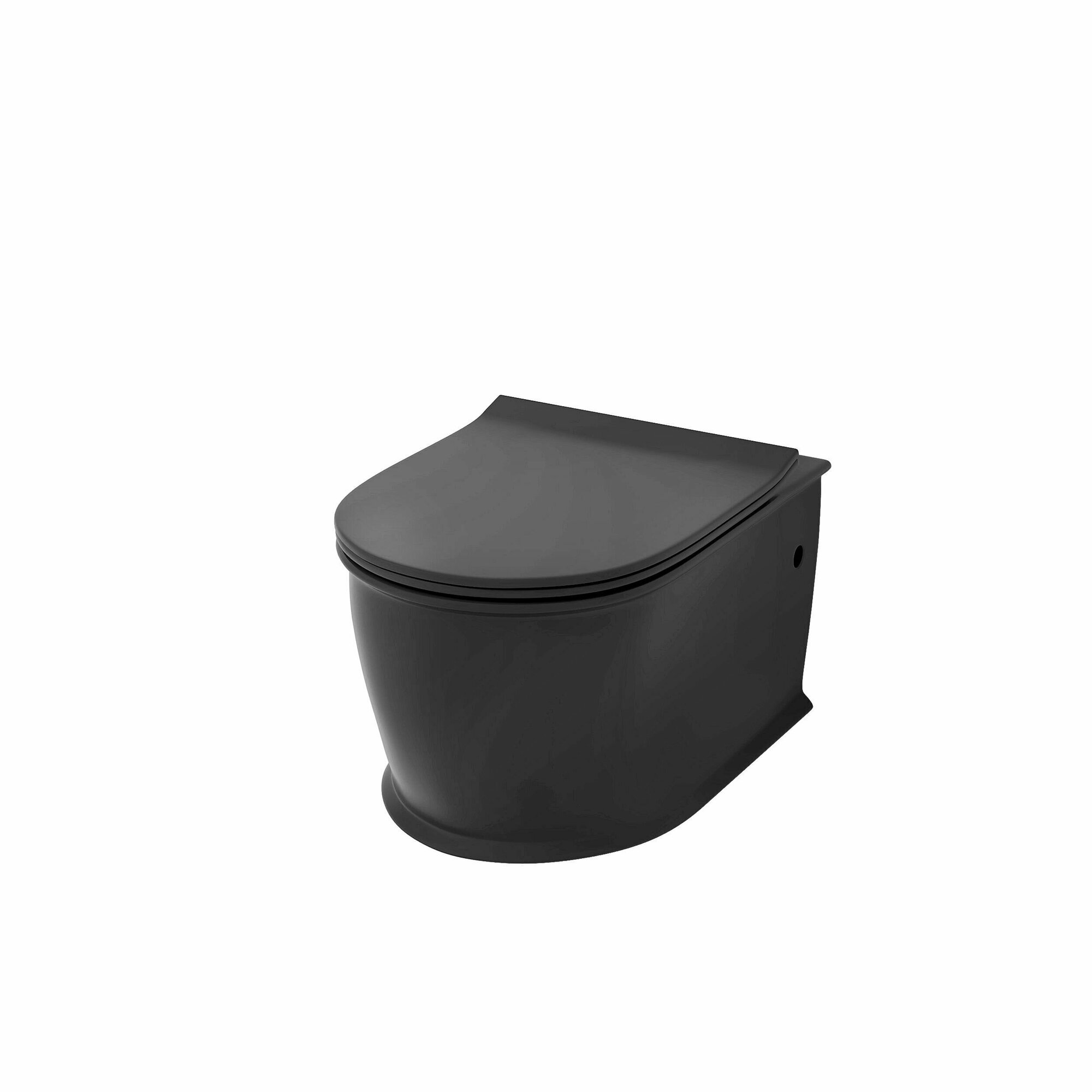 Купить Унитаз GR-4482BMS Retro (545*370*360) черный матовый подвесной безободковый с тонкой крышкой