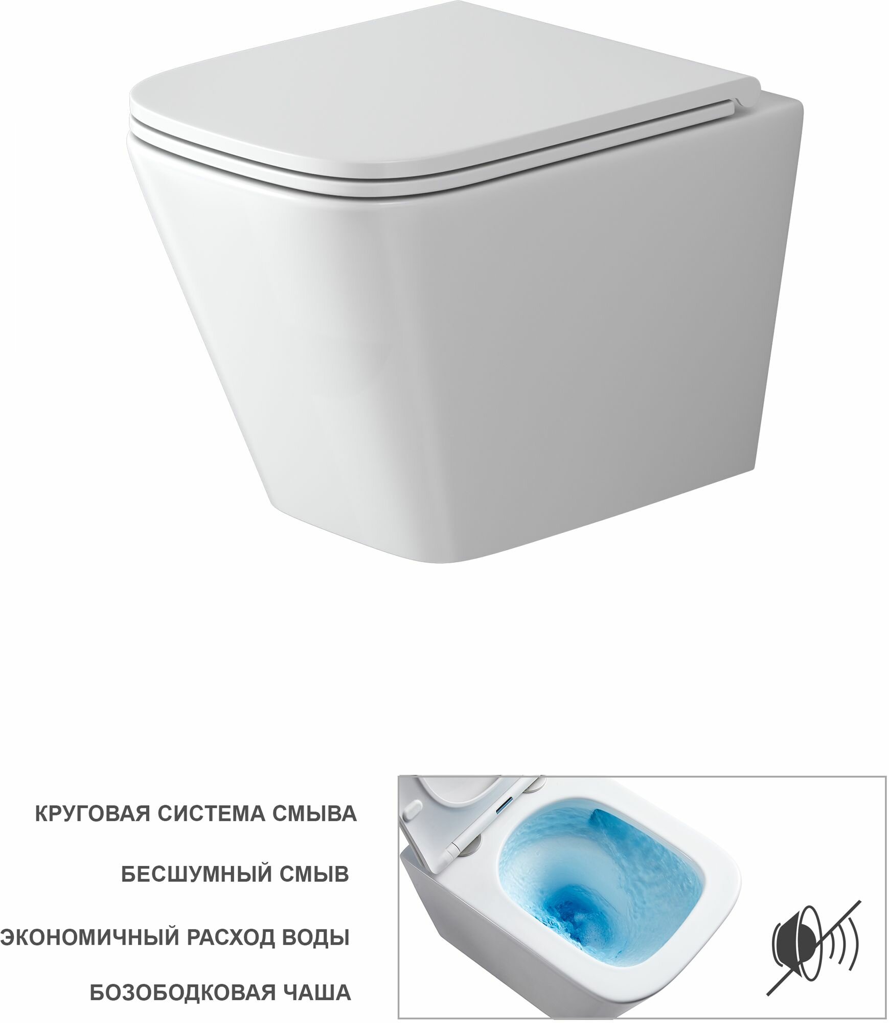 Унитаз подвесной Grossman GR-4411BS с тонким сиденьем микролифт