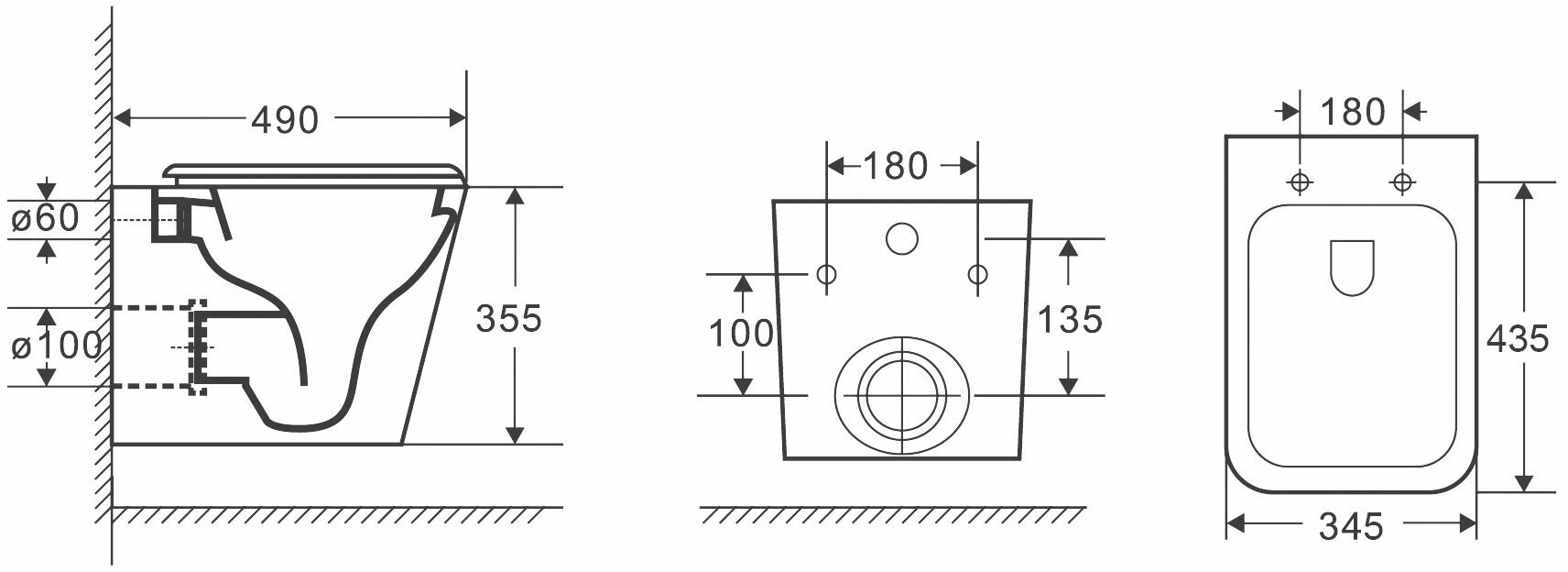 Унитаз подвесной Tornado GR-4455BMSQ черный матовый
