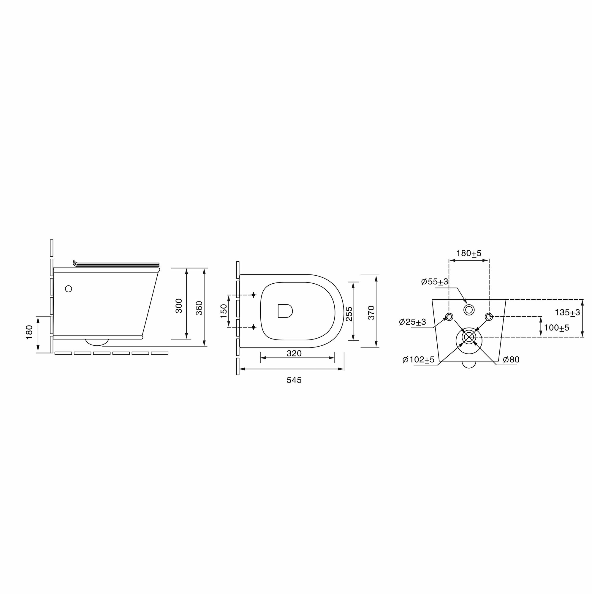 Унитаз GR-4482BMS Retro (545*370*360) черный матовый подвесной безободковый с тонкой крышкой