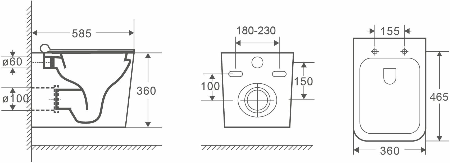 Унитаз безободковый Grossman GR-4414S 600x355x410 подвесной с тонкой крышкой