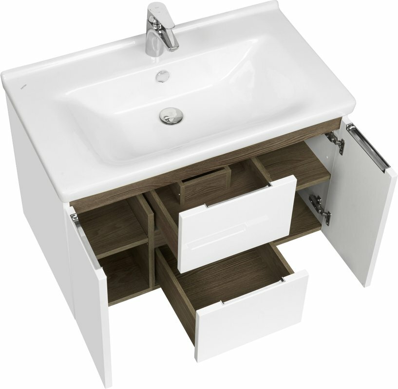 Тумба с раковиной AQUATON Рене 80 + Fest 80 белая, грецкий орех
