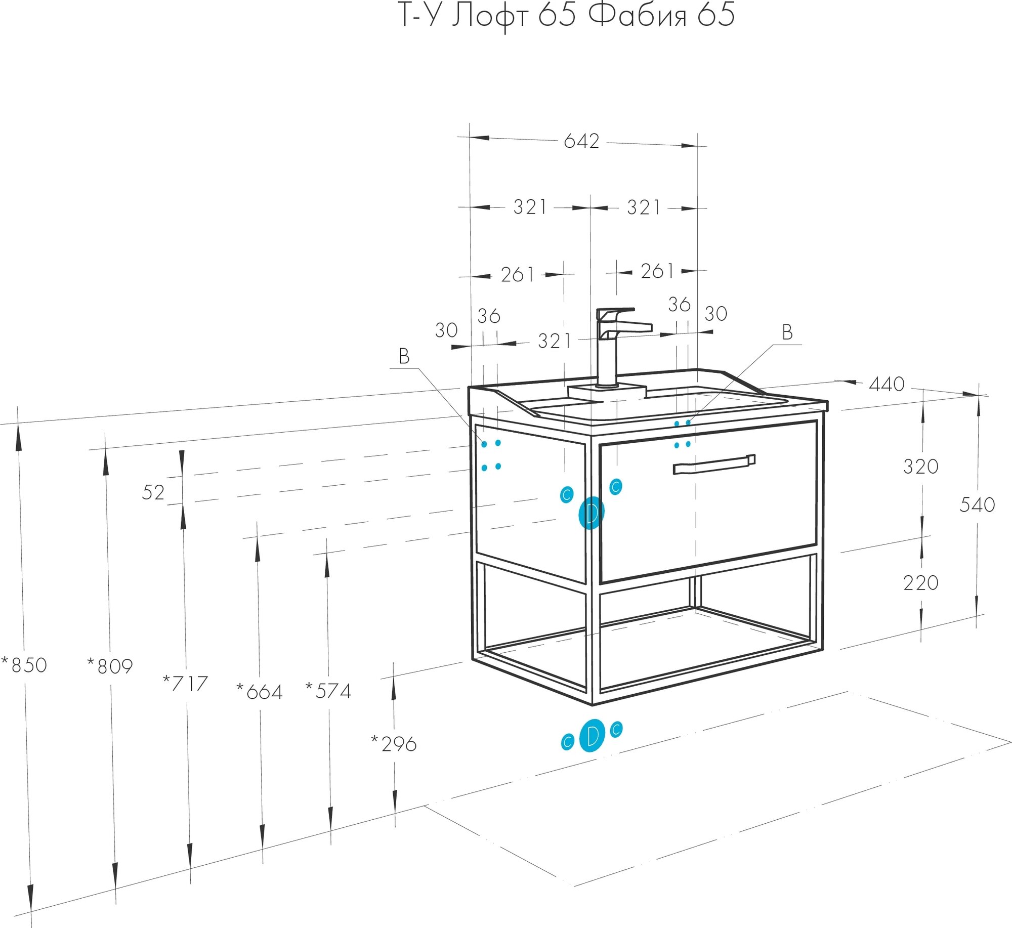 Тумба Акватон Лофт Фабрик 65 1A2423K2LTDY0 с раковиной и столешницей (1A242301LTDY0+1WH501709+1A242903LTDY0) (3 коробки)