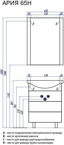 Тумба Акватон Ария 65 Н 1A1234K0AA010 с раковиной (1A123401AA010+1WH207782) (2 коробки)