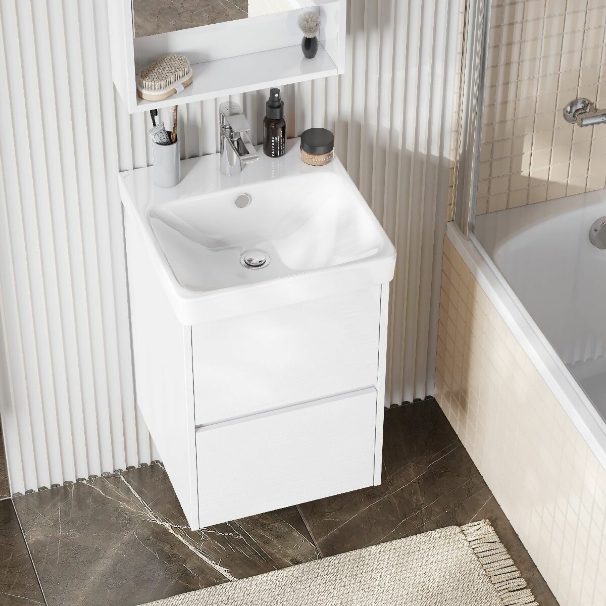 Купить Тумба с раковиной для ванной подвесная с выдвижными ящиками AQUATON (1A2516K0SD010) Сканди 45 белый матовый/белый глянец, раковина Адриана 45