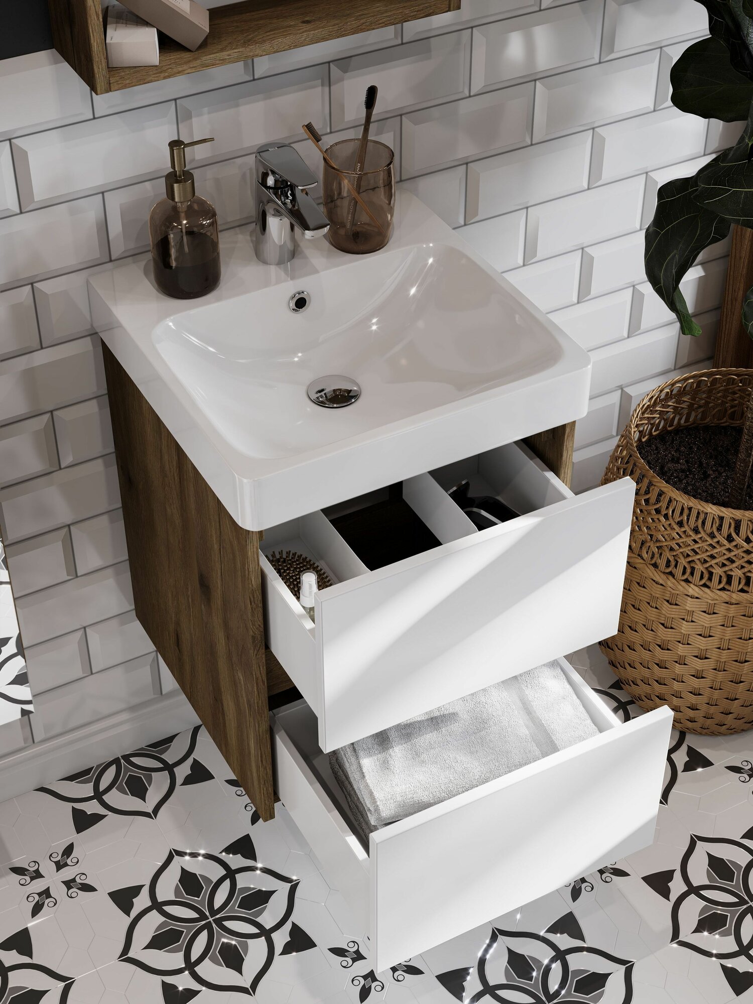 СохранитьТумба с раковиной для ванной подвесная с выдвижными ящиками AQUATON Сканди 45 белый/дуб рустикальный, раковина Адриана 45 интересное: